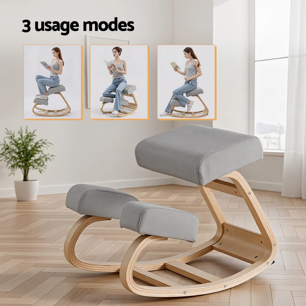 Artiss Ergonomic Kneeling Chair with Memory Foam, Steel Frame, 120kg Capacity, Rocking Base, Grey, 43x71x56.5cm