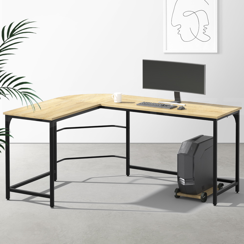 Artiss L-Shape Computer Desk with CPU Stand, Oak Finish, 147cm - Durable Particle Board & Steel, Space-Saving Design