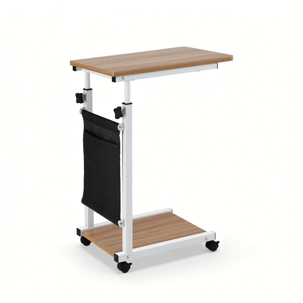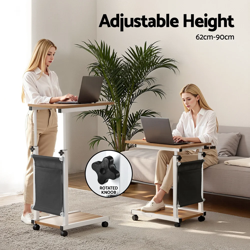 Artiss Adjustable Mobile Laptop Desk – 48CM Oak, C-Shape Frame, Pneumatic Height, Smooth Casters for Home Office
