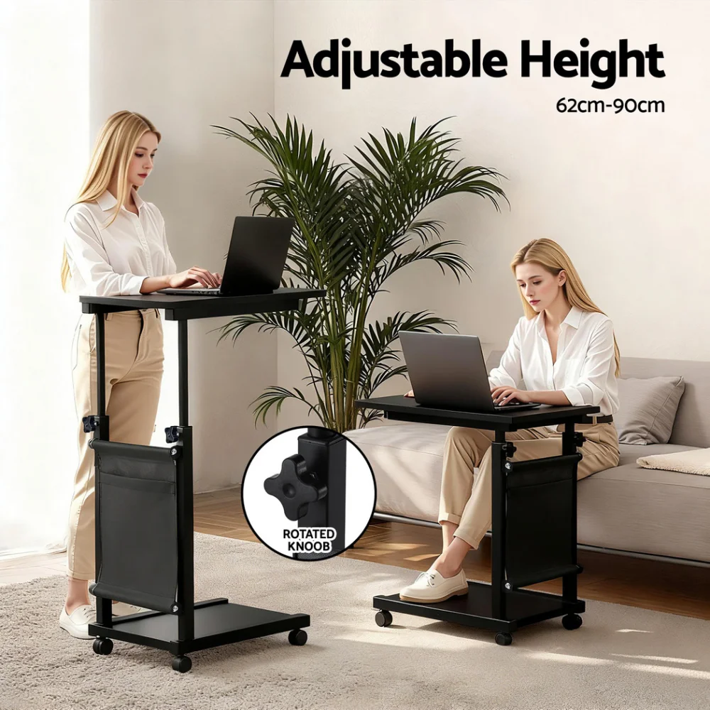 Artiss Height Adjustable Mobile Laptop Desk - 48CM Black, C-Shape Metal Frame, Pneumatic Height Adjust, Smooth Casters