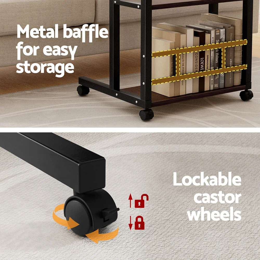 Artiss Height Adjustable Mobile Laptop Desk, 60CM, Steel Frame, Walnut/Black, Ergonomic Workstation with Shelves