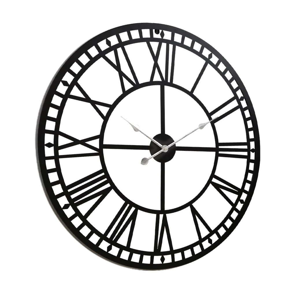 Artiss 60cm Large Wall Clock Black Metal, Roman Numerals, Vintage Northern European Style, Easy Install, Durable