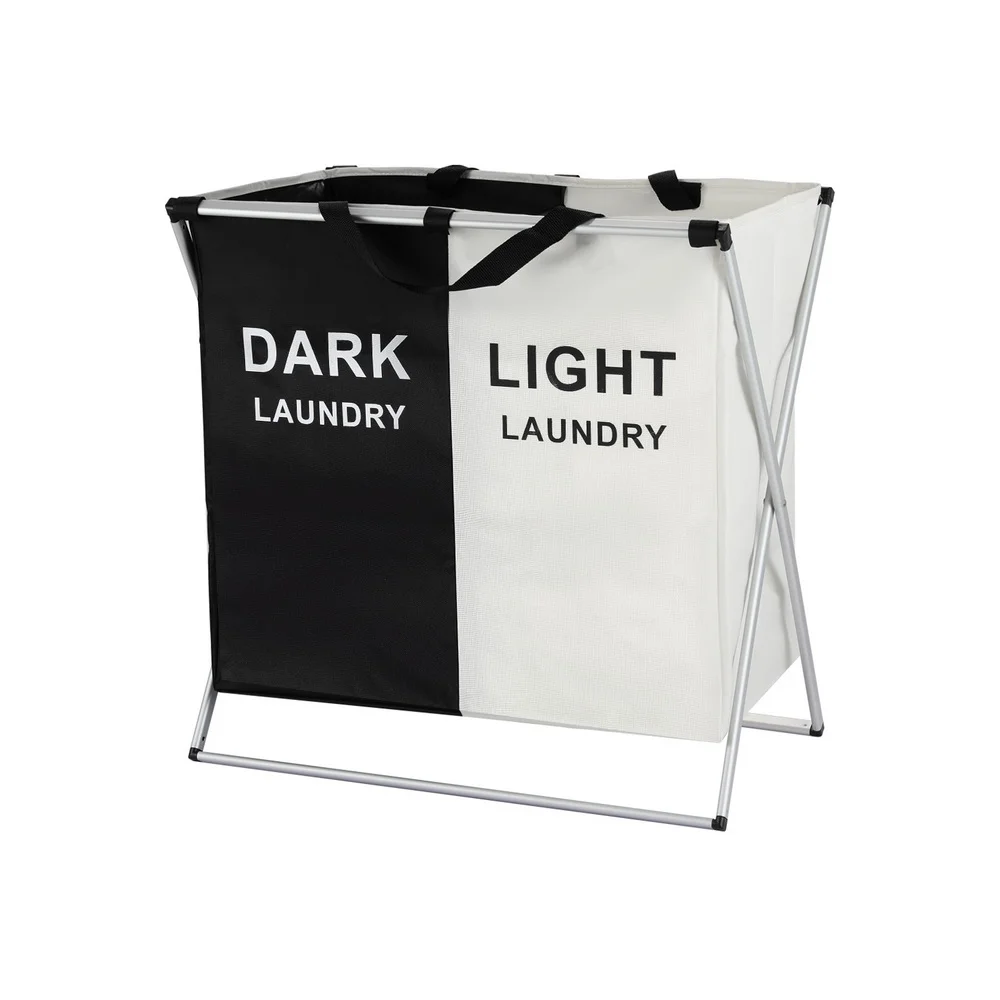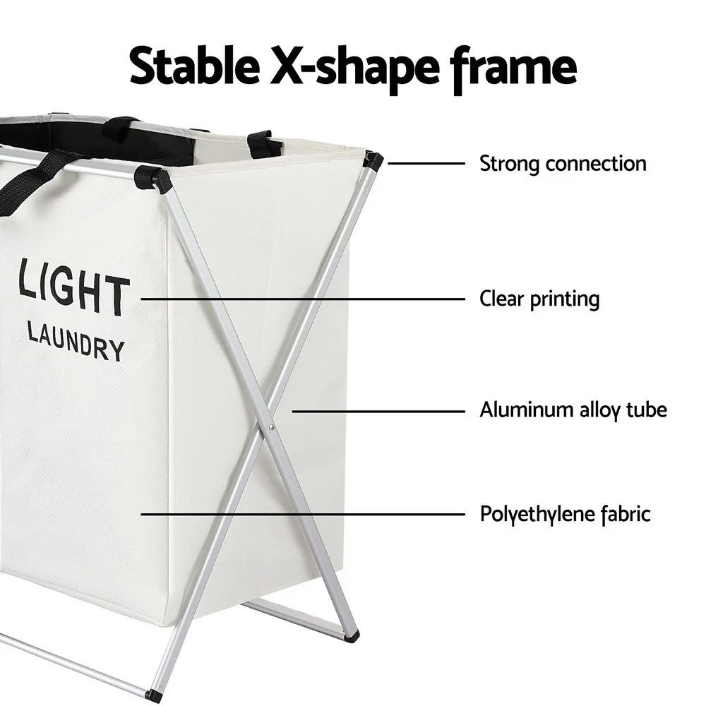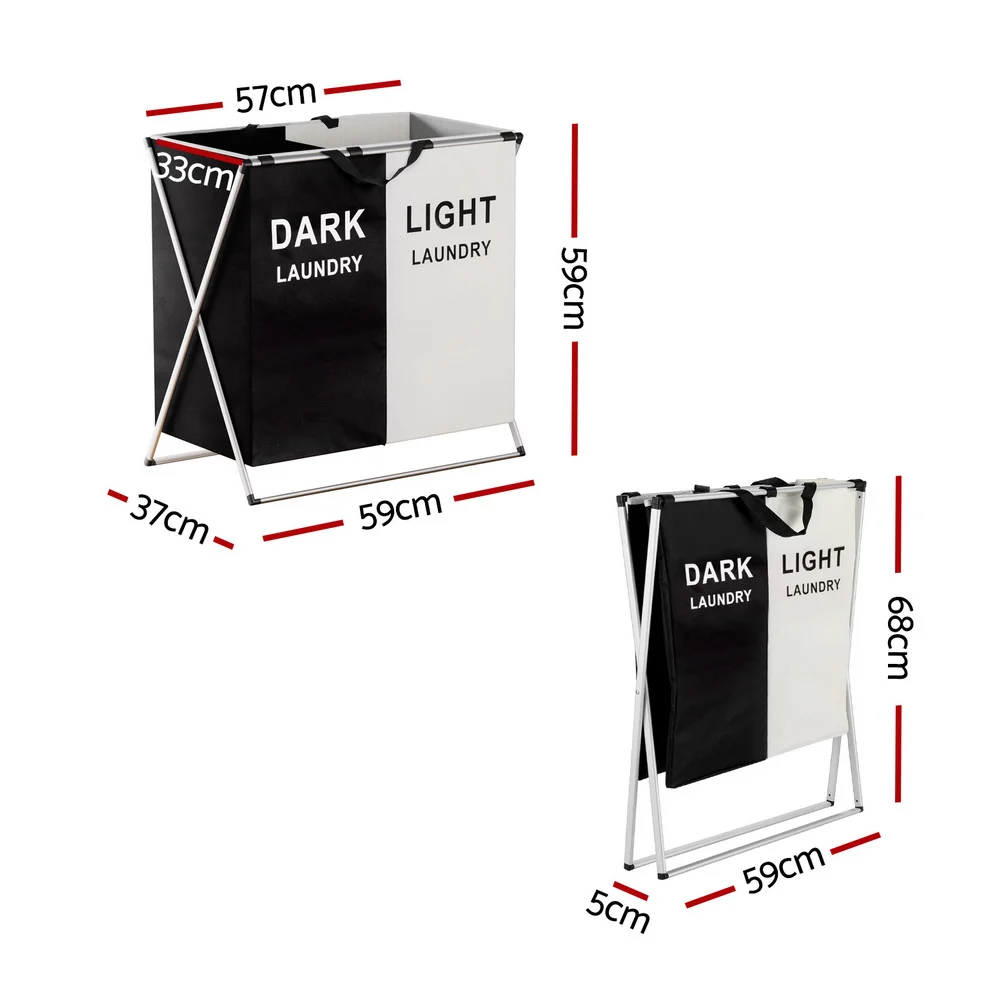 Experience effortless laundry management with the Artiss Laundry Basket Hamper. Designed with two sections to easily separate dark, lights, and colours, this basket boasts a large capacity to prevent laundry mishaps. Its robust X-shaped aluminium alloy frame and durable fabric lining ensure longevity. The hamper is foldable for convenient storage, and a handle makes it easy to carry. Simplify your laundry routine with Artiss, complete with a 1-year warranty.