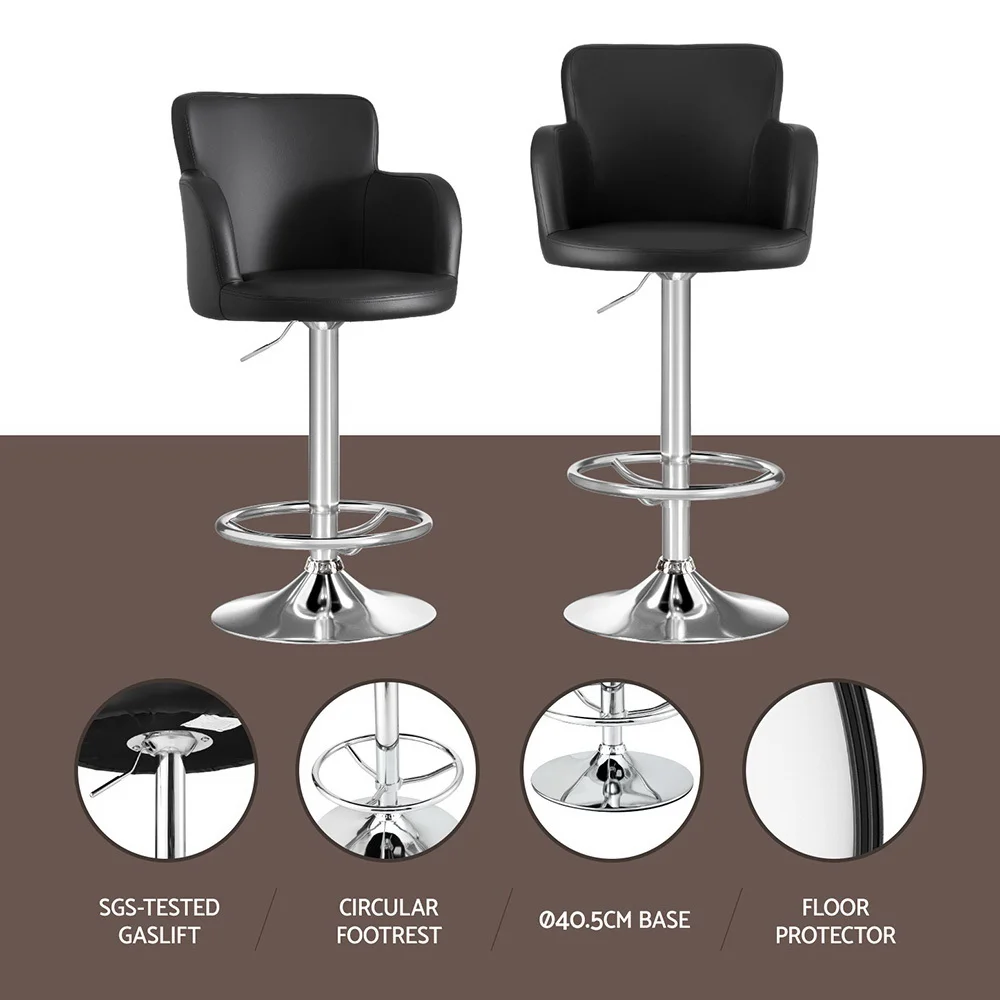 Artiss Bar Stools, Faux Leather, Adjustable Height, Black, 39x39x78-98cm, Contemporary Design, Set of 2