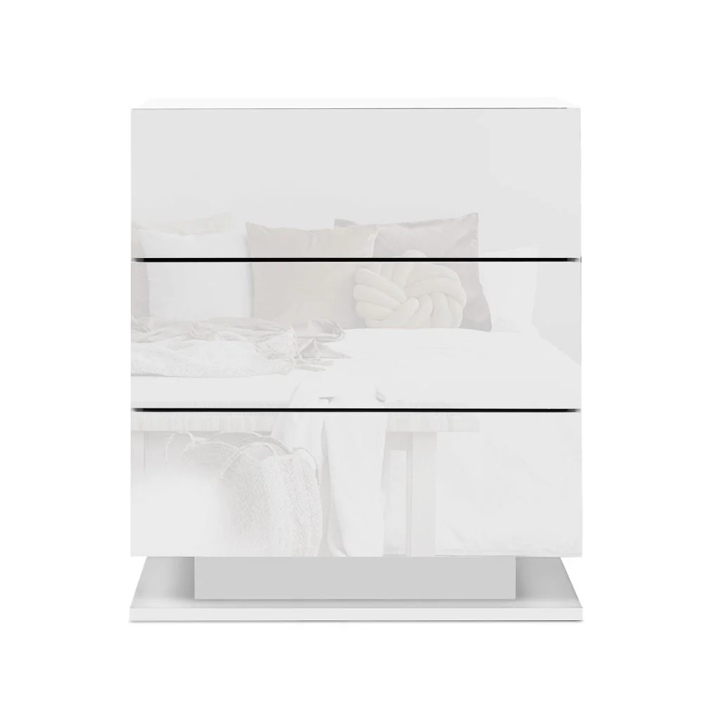 Artiss MORI White LED Bedside Table with 3 Drawers - Customisable Colours & Modern Design for Stylish Bedrooms