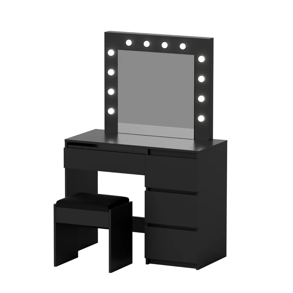 Artiss Dulcea Dressing Table Set with LED Mirror, Stool, MDF Build, 2 Drawers, Anti-Rust Runners, Black, 108x40x135cm