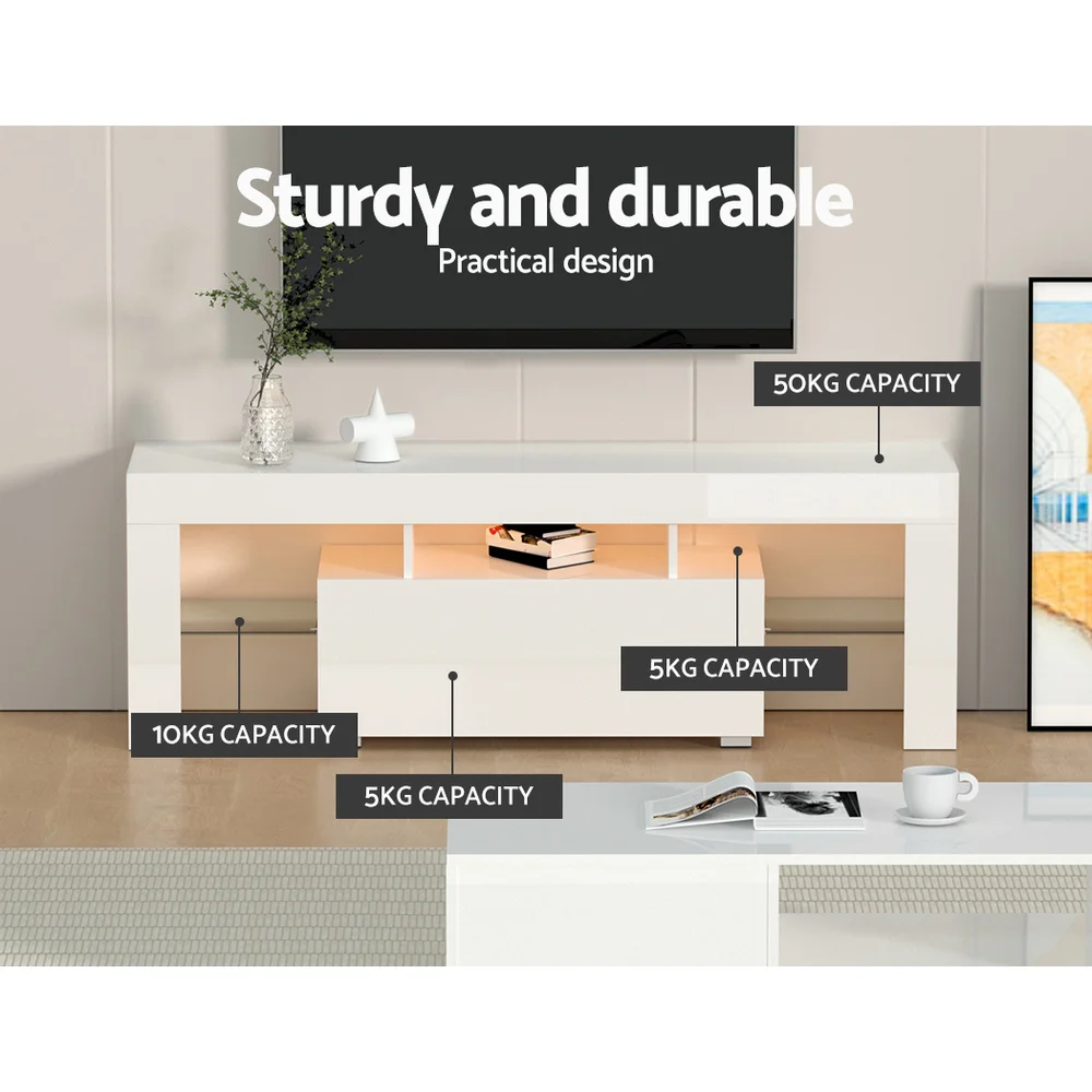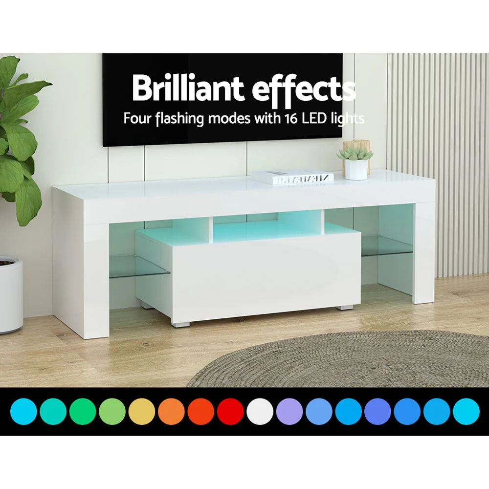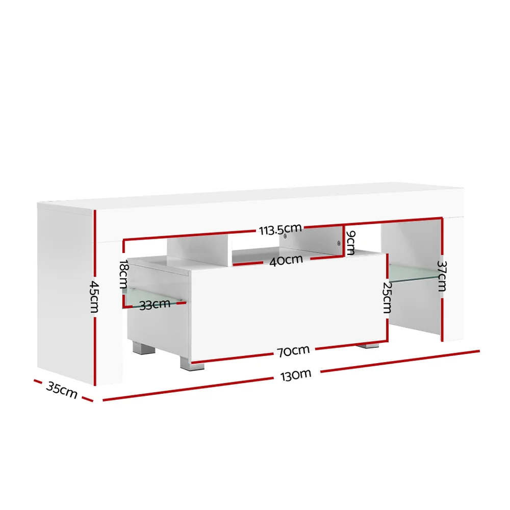 Artiss 130cm White LED TV Cabinet – Modern Entertainment Unit with Customisable RGB Lighting & Ample Storage