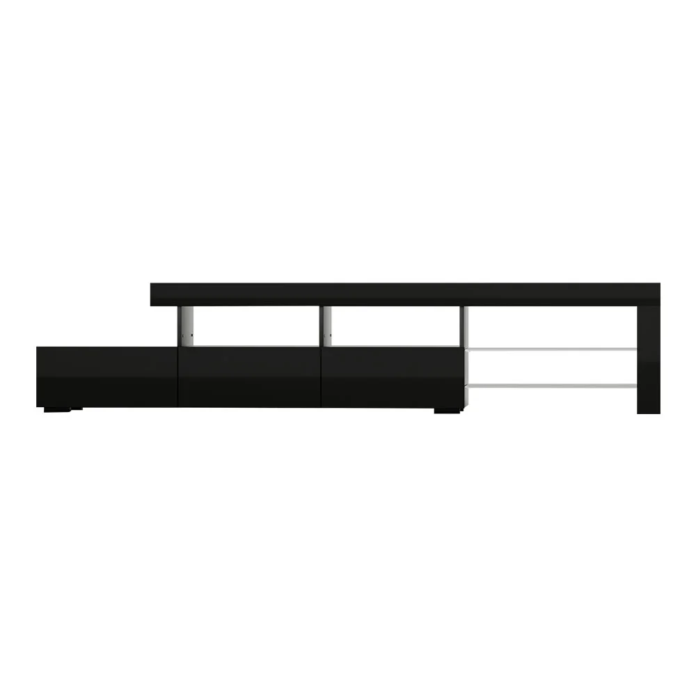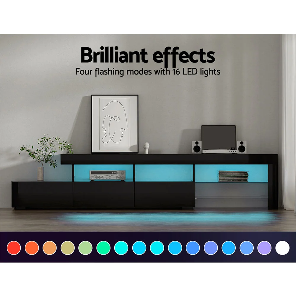 Artiss 215cm Black LED Entertainment Unit TV Cabinet with RGB Lighting, Tempered Glass Shelves, and High Gloss Finish