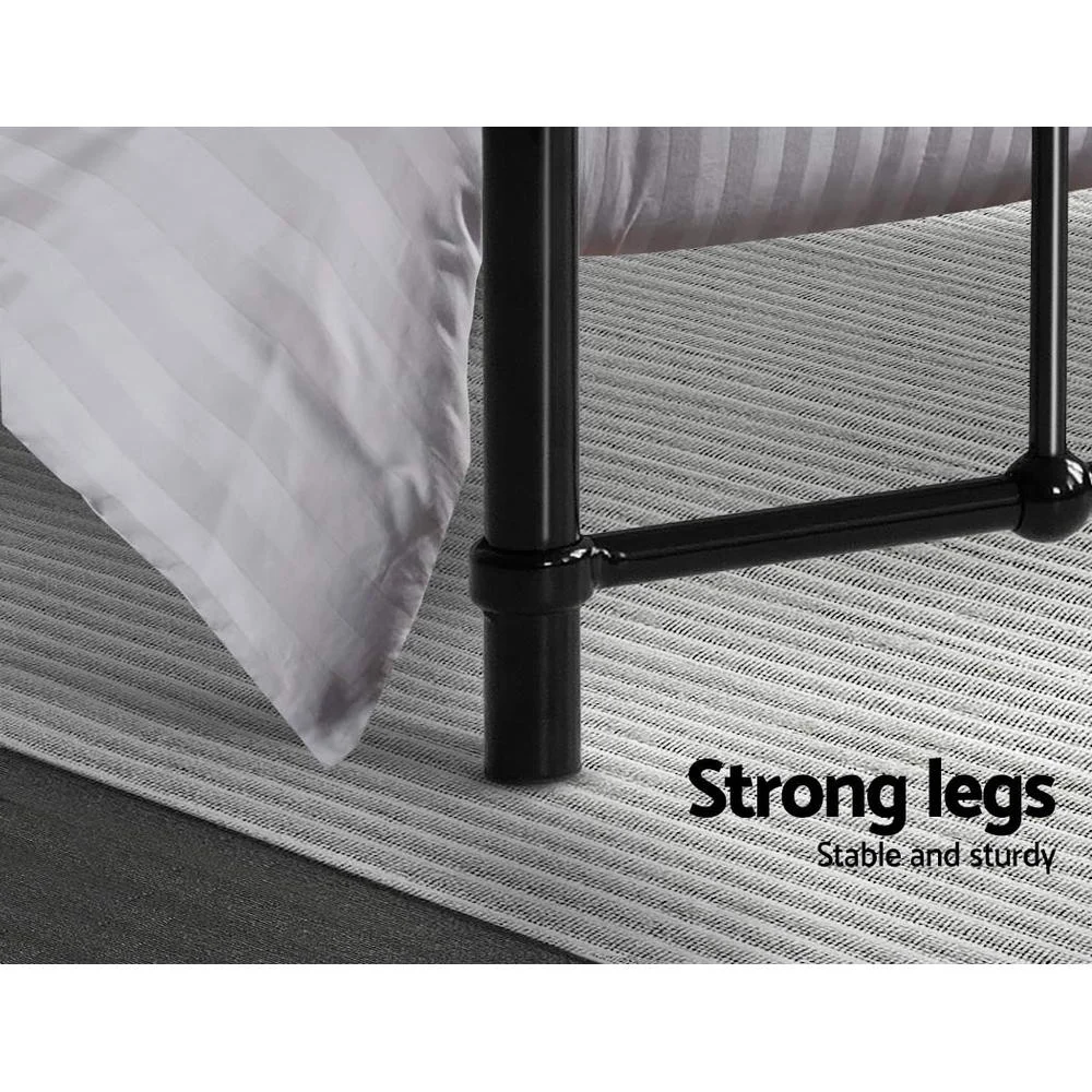 Artiss Leo Double Bed Frame - Black Metal, Country Style, Powder-Coated Steel, Ample Storage, 300kg Capacity