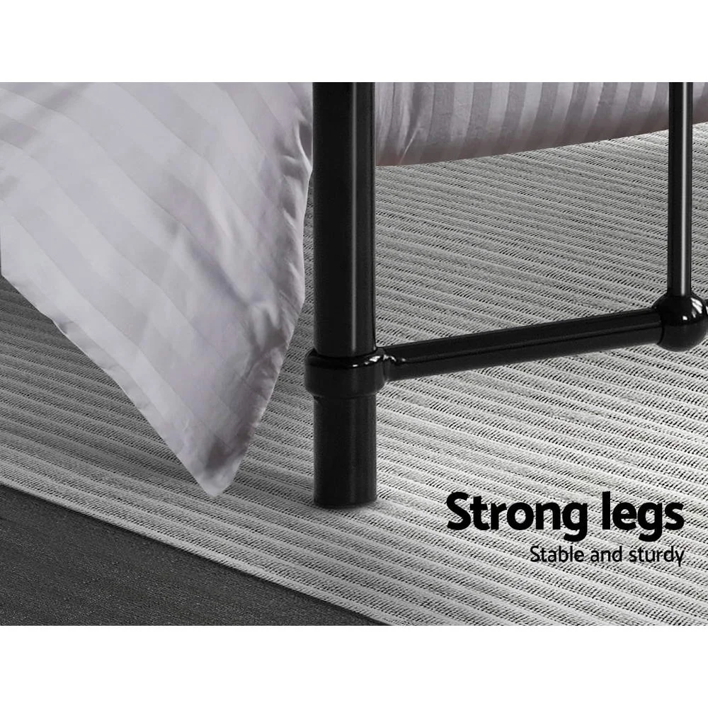 Introducing the Artiss Leo Bed Frame, a lovely and elegant addition to any bedroom. Crafted in sturdy steel with a sophisticated, rust-resistant powder-coated black finish, this country-style bed frame is designed for durability and strength. Its simple yet stylish design complements any decor, while evenly spaced metal tube supports ensure optimal weight distribution and mattress stability. The strong centre support beams provide additional steadiness, and the ample storage space underneath is perfect for space-challenged rooms. Designed to accommodate standard King Single-sized mattresses, the Leo Bed Frame promises restful nights and pleasant dreams.