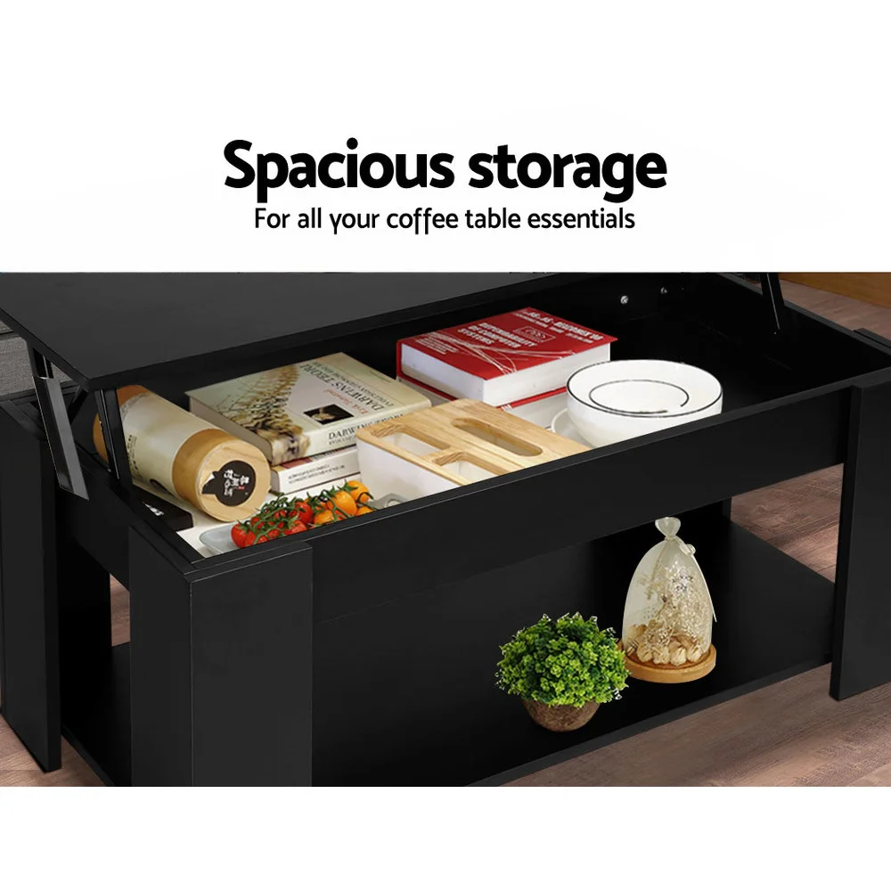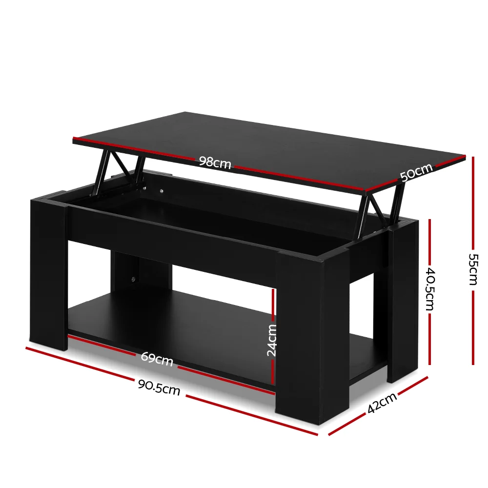 Artiss Black Lift-Top Coffee Table with Hidden Storage, 98x50x42cm, Sturdy Particle Board, Anti-Scratch Pads