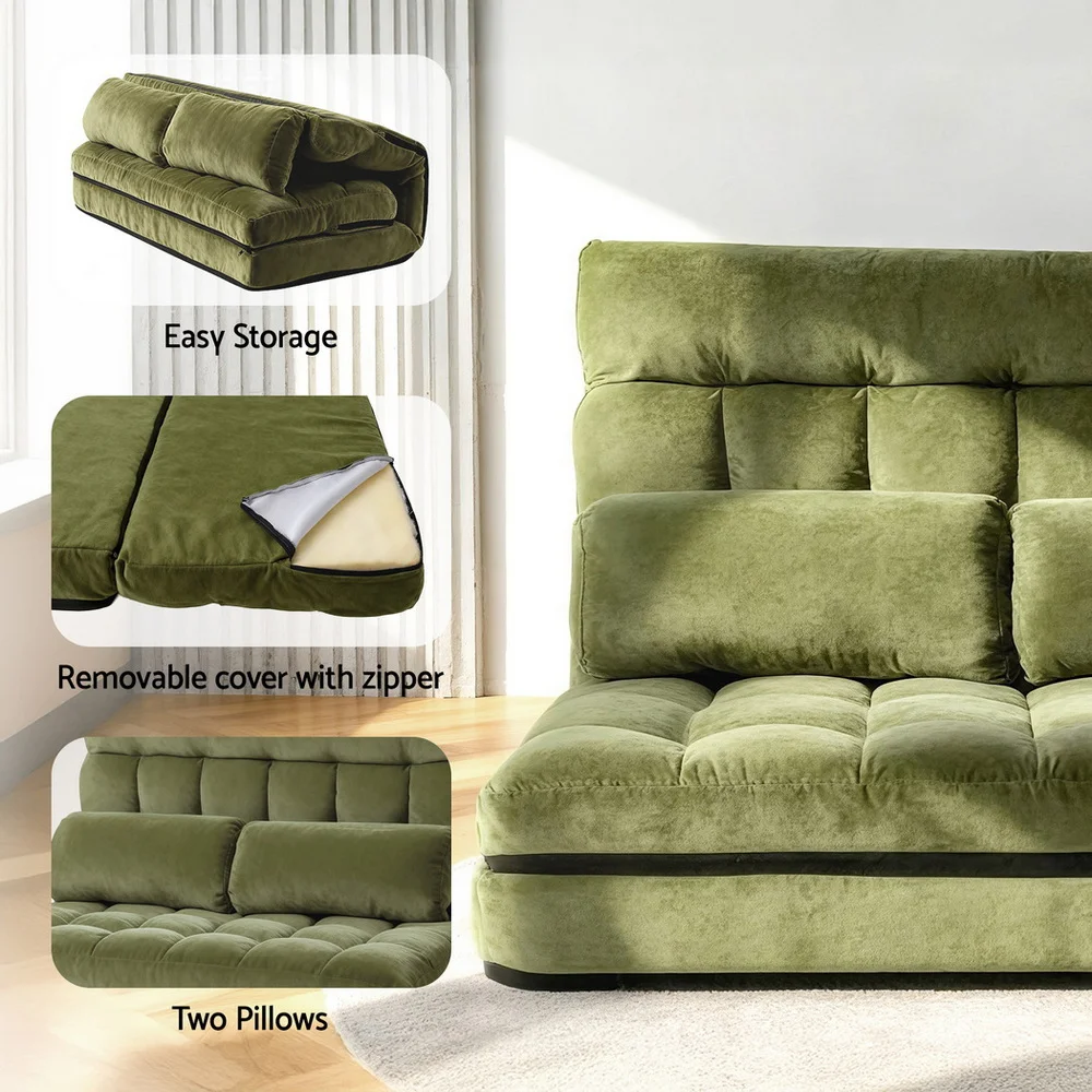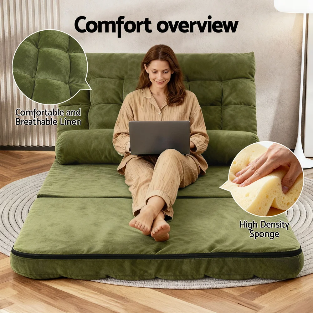 Unwind in style with the Artiss Lounge Sofa Bed, a versatile addition to your home that effortlessly transitions between a sofa, a laid-back lounge, or a mattress. Designed for personalised comfort, it features five adjustable angles and three locking positions to suit your relaxation needs. Crafted from heavy-duty steel and upholstered in luxuriously soft faux linen fabric, this sofa bed is padded with high resilience foam for long-lasting support. Conveniently, it separates into four pieces for easy storage and has removable covers for simple cleaning. Available in a chic green hue, it complements any decor while offering unmatched comfort.