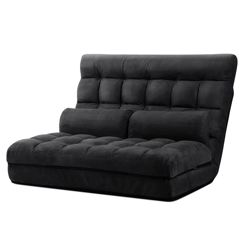 Artiss Lounge Sofa Bed, Charcoal Suede, 2-Seater, 167x95x13cm - Adjustable, Foldable, Easy Storage