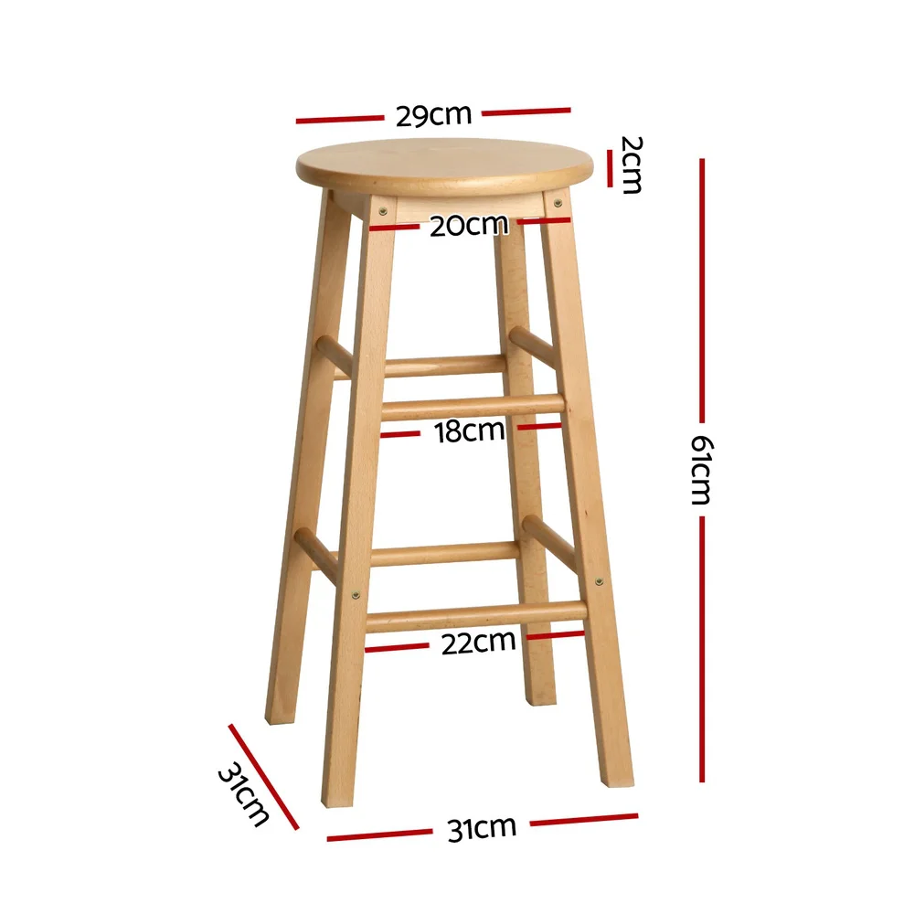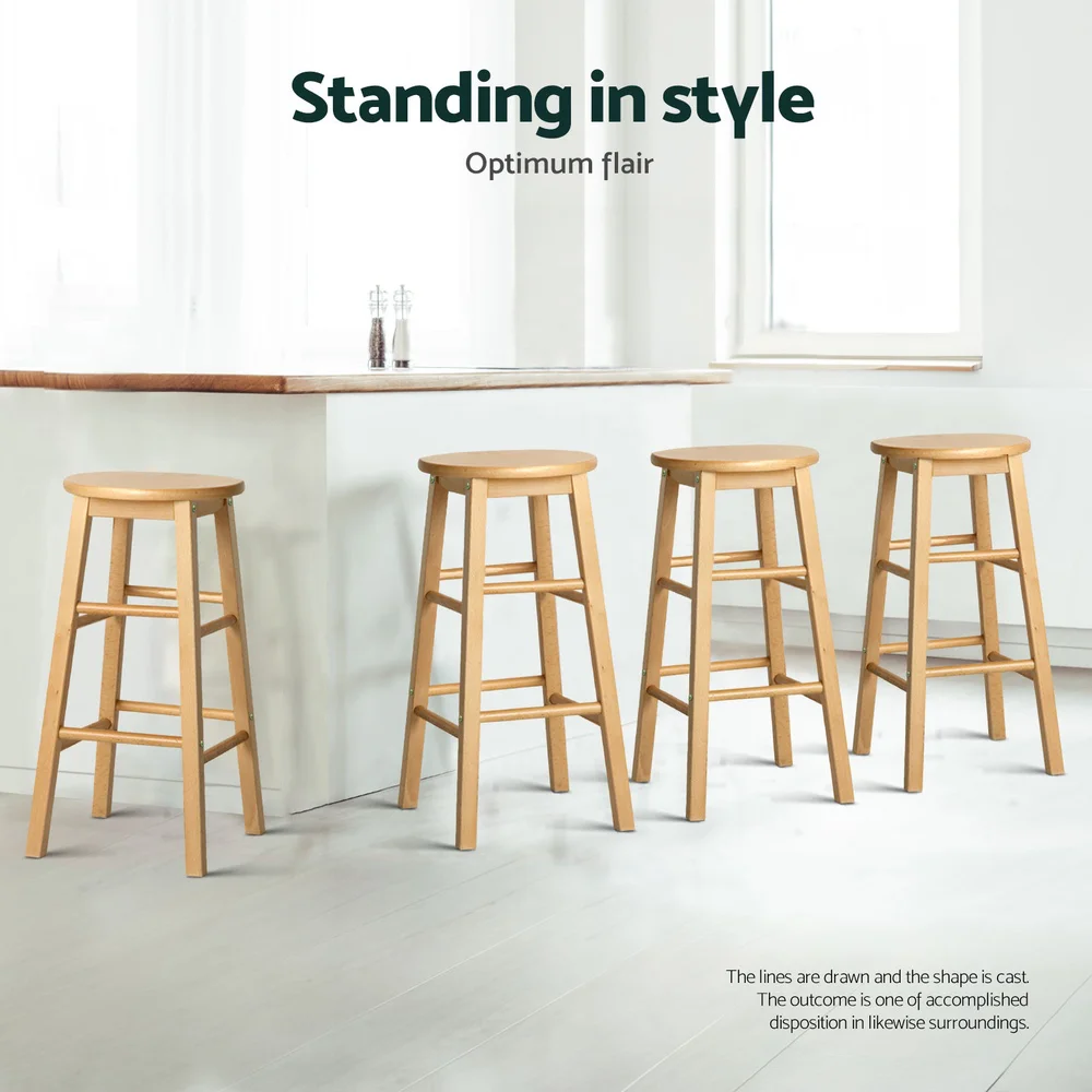 Artiss 4x Baden Bar Stools - Beech Wood, 66.5cm, Natural, Sturdy Design, Anti-Slip, 130kg Capacity, 1