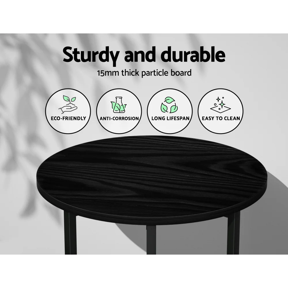 Artiss Emma Black Round Coffee Table - Industrial Style, Durable & Space-Saving Side Table with 20KG Capacity