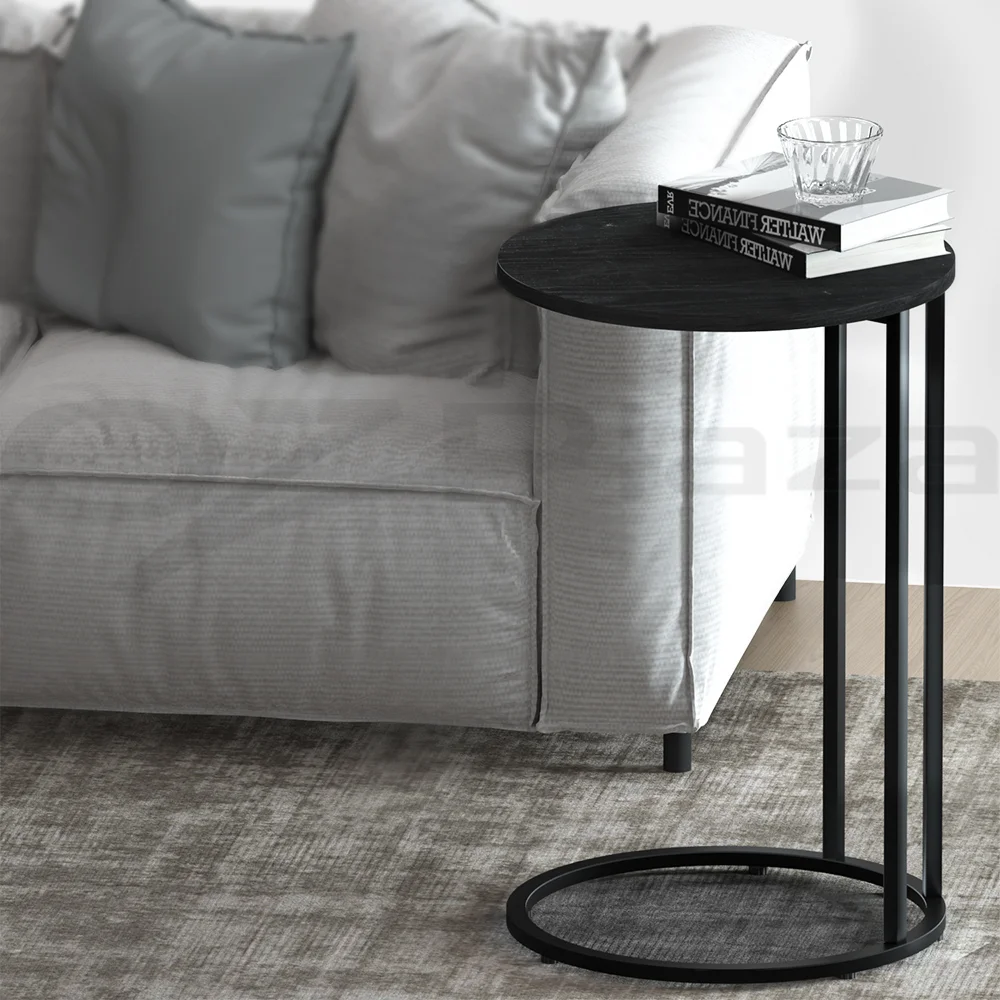 Elevate your living room with the Artiss Emma Coffee Table Side Table Round Black Martha. This modern piece features clean lines and smooth edges, bringing an industrial-style feel to your space. Crafted with a thick particle board tabletop and solid metal frame, it promises durability and stability. Its C-shape design and anti-slip feet ensure floor protection and space-saving practicality. With a 20KG weight capacity and easy assembly, this sleek, versatile table is a must-have for any home. Shop now and enjoy a 1-year warranty.