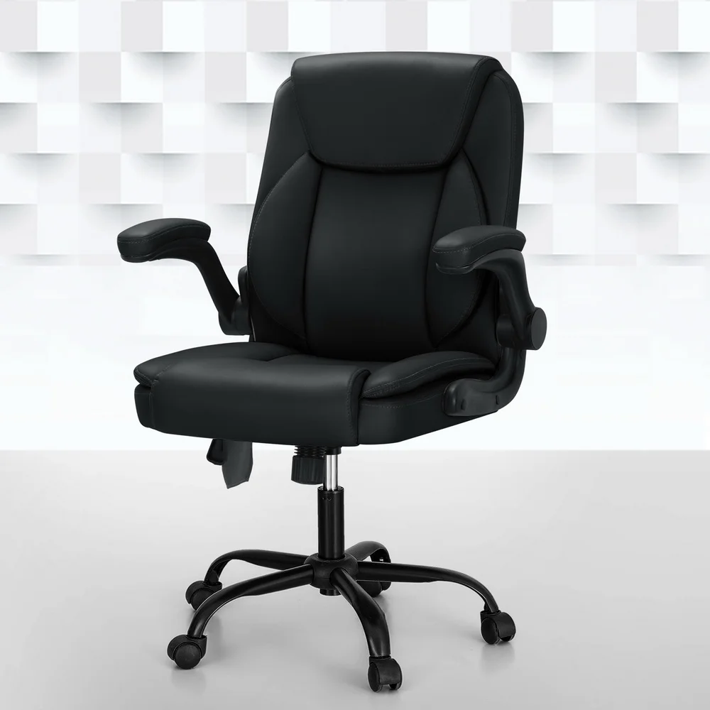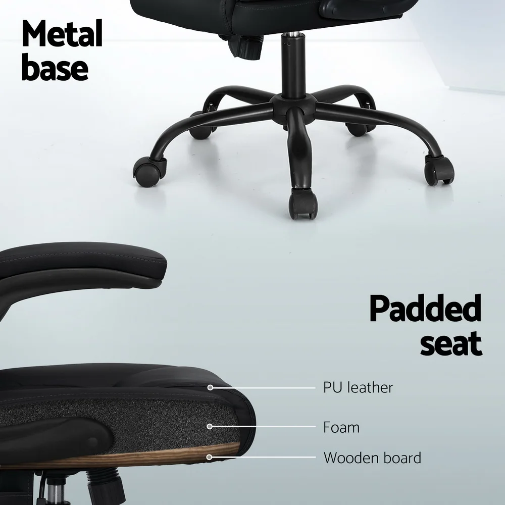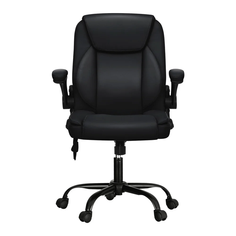 Artiss 2 Point Massage Office Chair - Black PU Leather, Mid Back, Adjustable, 360° Swivel, Lumbar Support