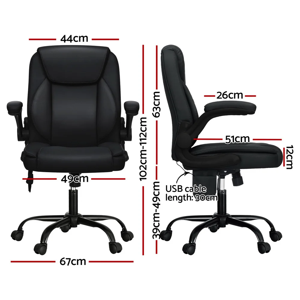 Experience unparalleled comfort and luxury with the Artiss 2 Point Massage Office Chair. Designed with your well-being in mind, this chair offers a soothing two-zone vibration massage targeting your lumbar area to alleviate back tension and soothe aching muscles. Wrapped in premium PU leather, it features a contoured backrest, tilt adjustment, padded headrest, and armrests for ultimate support. Effortlessly glide across your office with its 360-degree rotation and dual-wheel castors. With a sturdy black metal base and a weight capacity of 150kg, this chair ensures both durability and style. Elevate your workspace comfort today with Artiss.