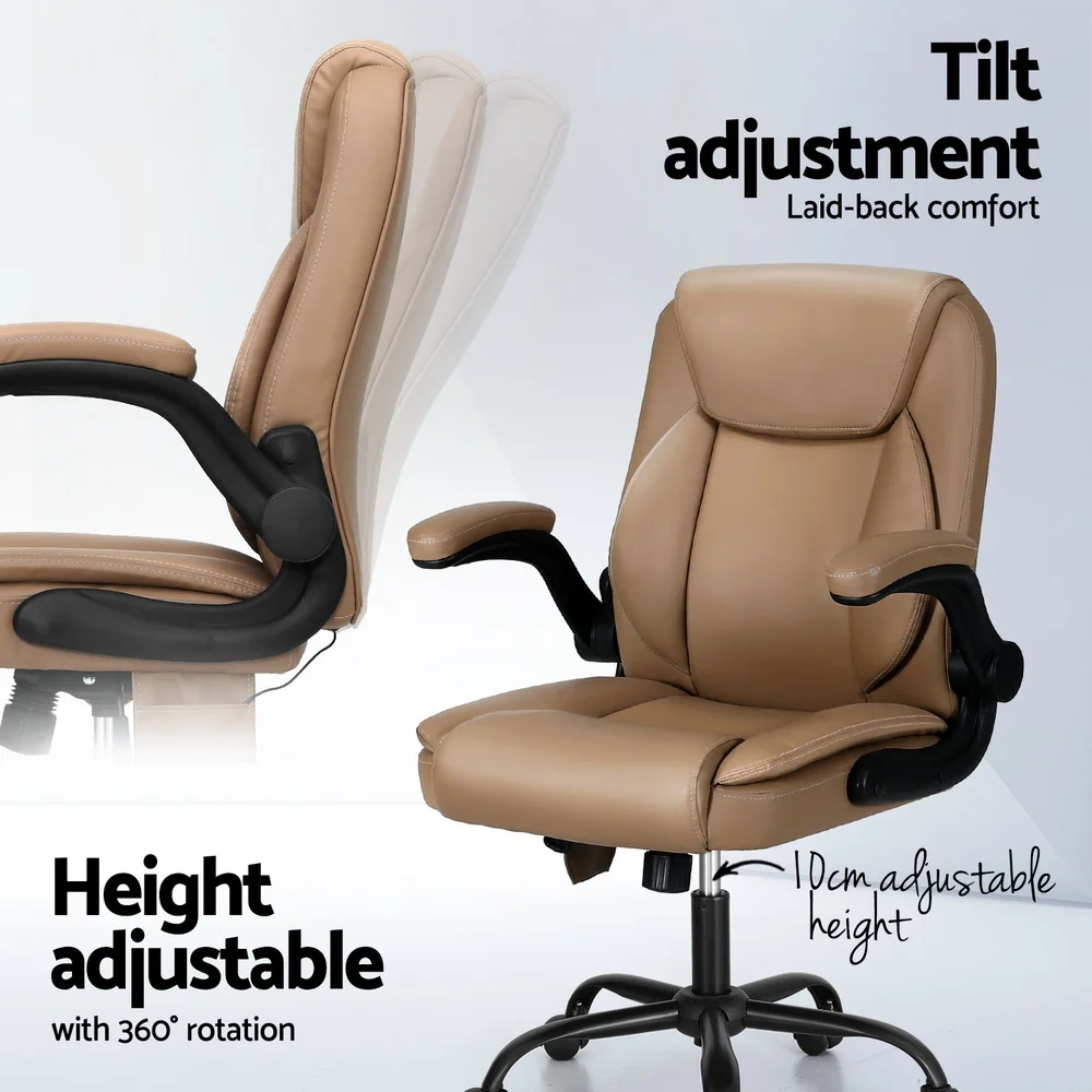 Artiss 2 Point Massage Office Chair Brown PU Leather Mid Back Ergonomic Chair with Lumbar Support and Tilt Adjustment