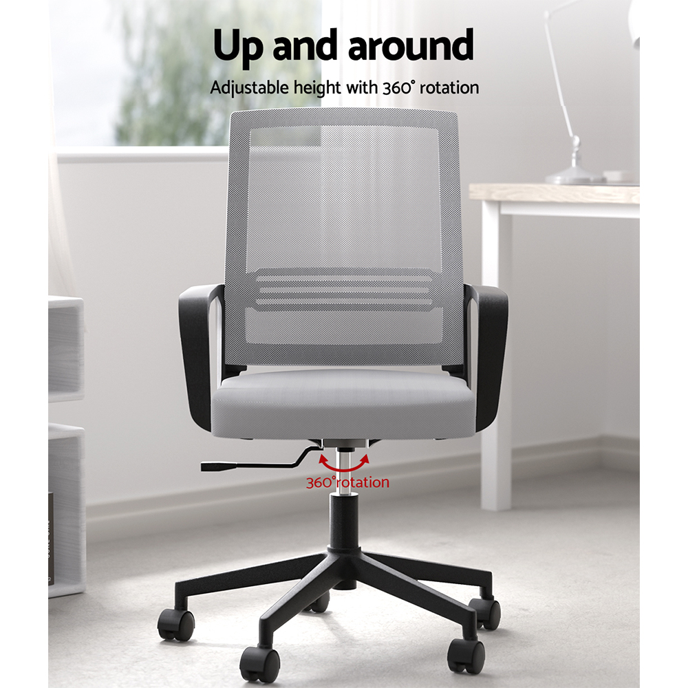 Artiss Mesh Office Chair Grey Mid Back Ergonomic Computer Gaming Desk Chair Height Adjustable with Armrest and Wheels