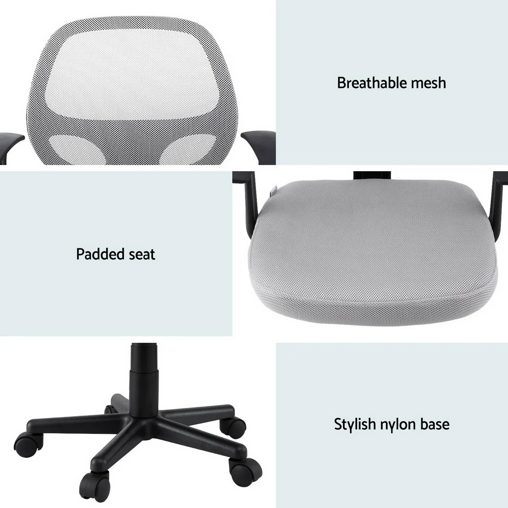 Artiss Mesh Office Chair Grey Mid Back Ergonomic Computer Gaming Desk Chair Height Adjustable with Armrest and Wheels