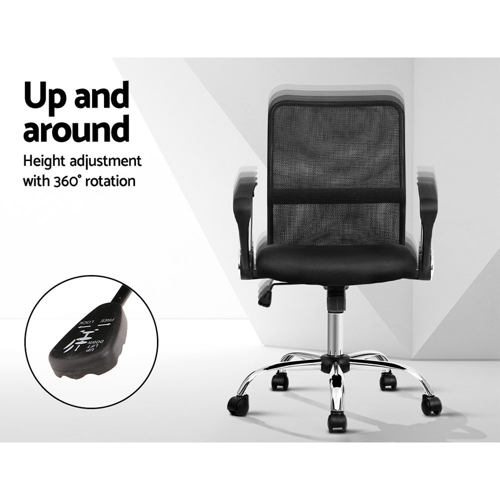 Artiss Mesh Office Chair, Mid Back, Black, Ergonomic Design, Adjustable Height, Lumbar Support, Chrome Base