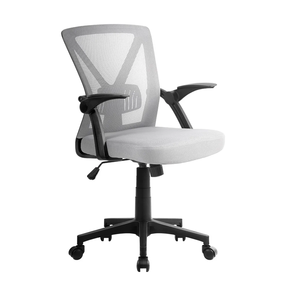 Artiss Mesh Office Chair, Mid Back, Grey, 66x66x86-96cm, Ergonomic, Adjustable Lumbar Support, Flip-Up Armrests