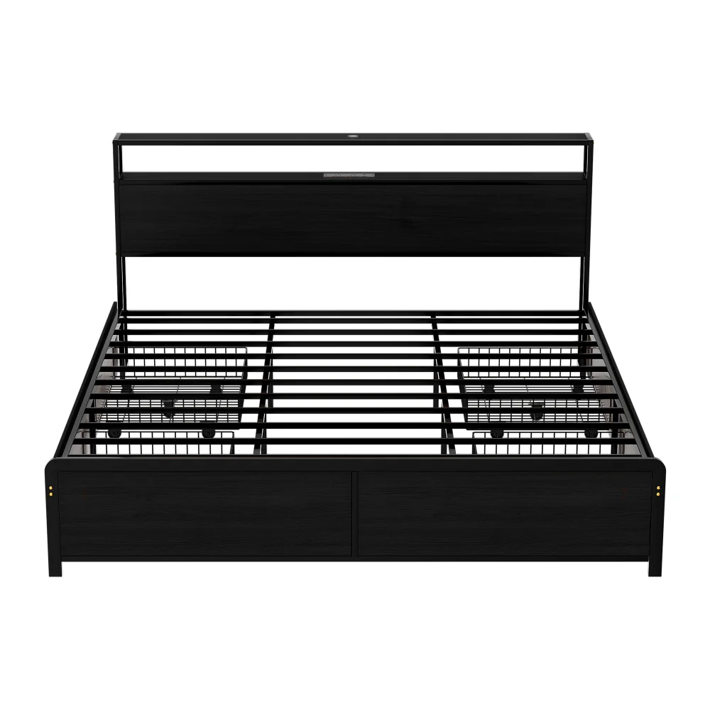 Artiss King Size Metal Bed Frame with Storage, LED Lights, Charging Station & 4 Drawers – Modern All-in-One Solution