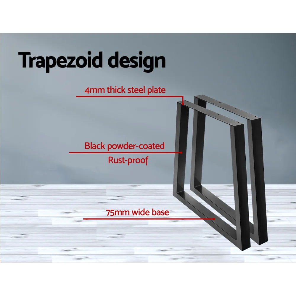 Artiss Industrial Metal Table Legs - Trapezoid 65x90cm, Set of 2, Black, Rust-Resistant for DIY Furniture Projects