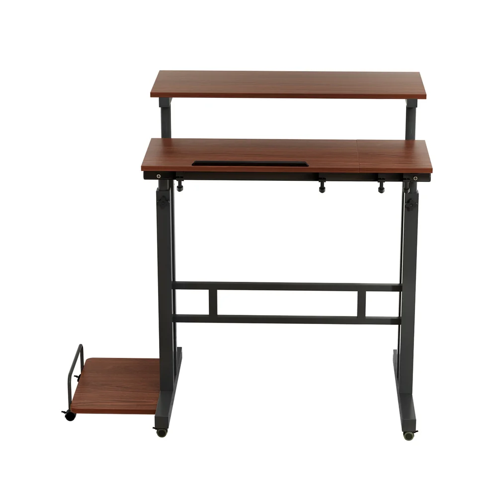 Experience flexible productivity with the Artiss Laptop Desk Table Adjustable in Dark Wood. Featuring dual adjustable desktops—one with tilt functionality and anti-slip bar—and a detachable CPU sideboard, this mobile desk adapts seamlessly to your workflow. Its sturdy H-shape steel frame and thick 17mm MDF tops provide durability and style, while 360° rotating, lockable castor wheels offer effortless mobility or a fixed setup. Perfect for sitting or standing, the classic matte finish complements any space.