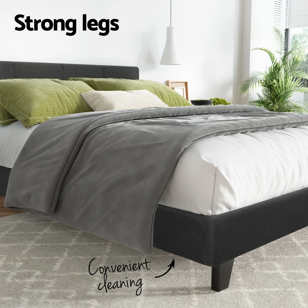 Artiss Neo Double Size Bed Frame Charcoal Faux Linen Upholstered Padded Headboard Solid Wood Slat Base 300kg
