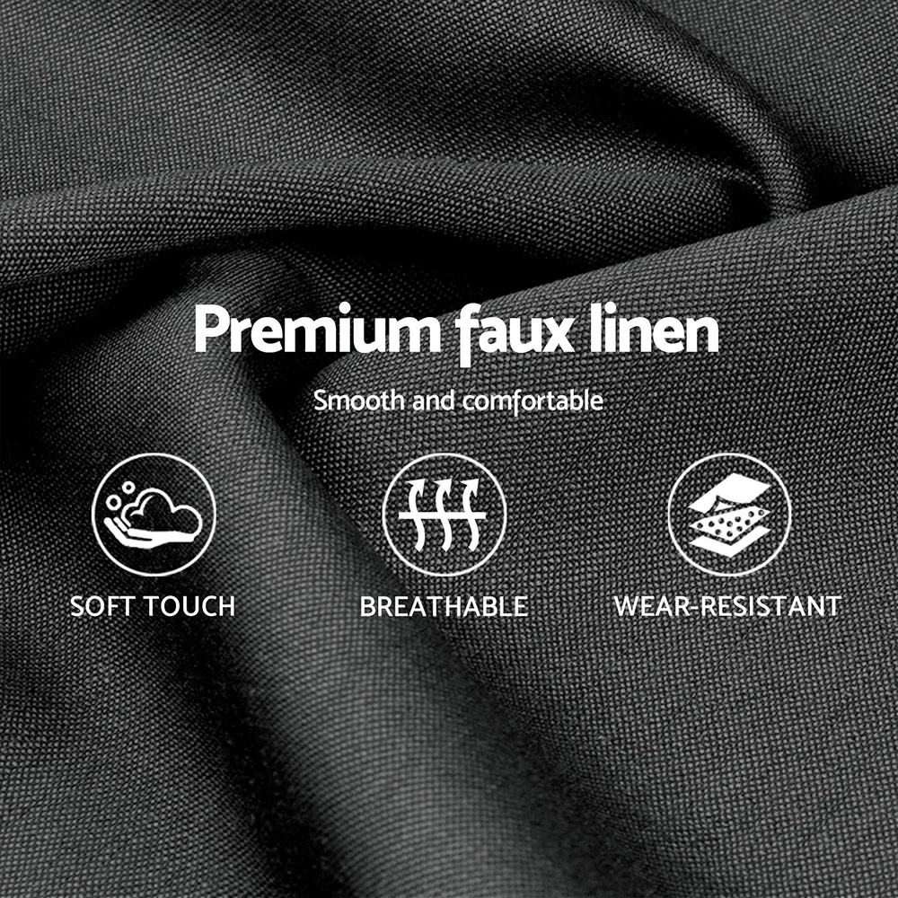 Enhance your bedroom with the Artiss Neo Bed Frame, a masterpiece of modern elegance. Wrapped in premium faux linen fabric, it offers a luxurious touch and feel. The padded bedhead is perfect for lounging, while the flexible wooden arched slat base ensures undisturbed sleep. Supported by a solid wooden frame and heavy-duty metal connectors, this bed frame is both stable and durable. Designed for elegance and comfort, the Artiss Neo Bed Frame is your gateway to serene slumber. Mattress sold separately.