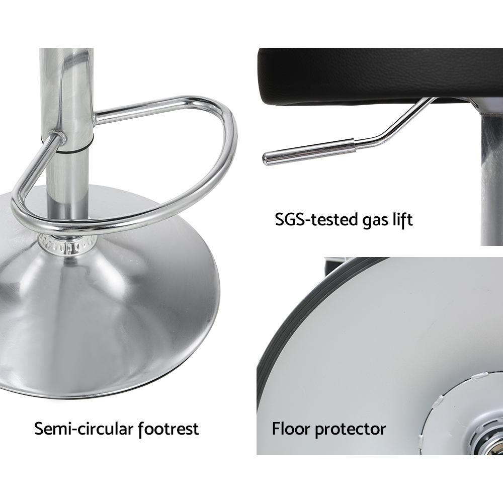Artiss 2x Nuvo Bar Stools Black PU Leather, Adjustable Swivel with Chrome Base and Footrest, 53-74cm Seat Height