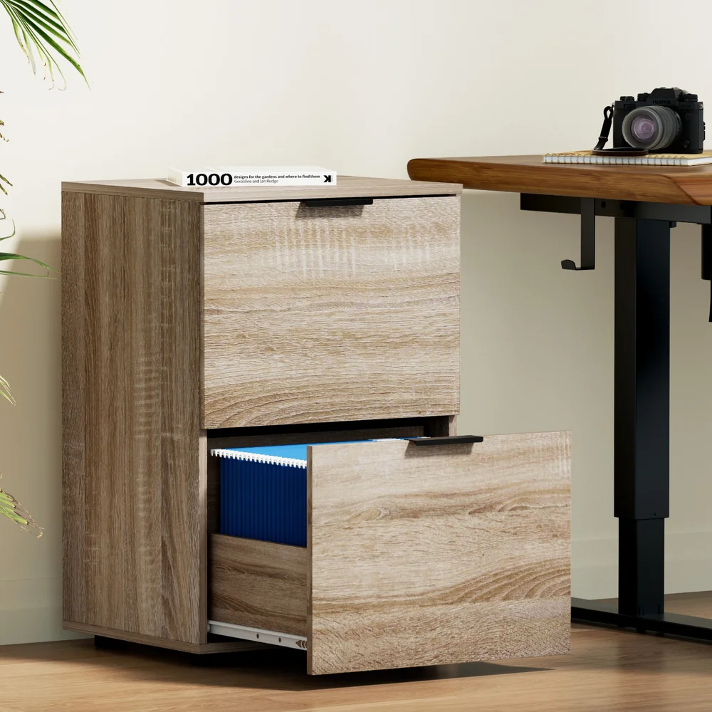 Artiss 2 Drawer Filing Cabinet - Modern Wood Finish, Metal Rails, Anti-Rust Runners, 45.5x41x55.5cm, Office Organiser
