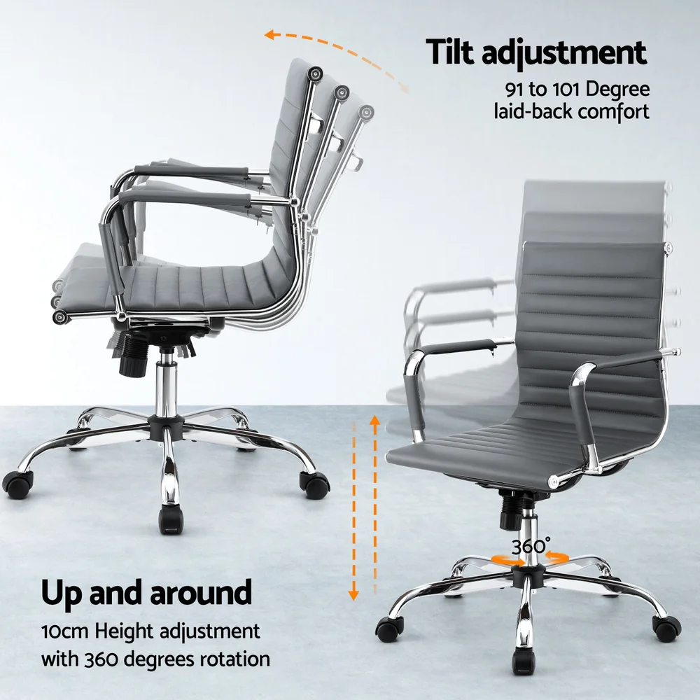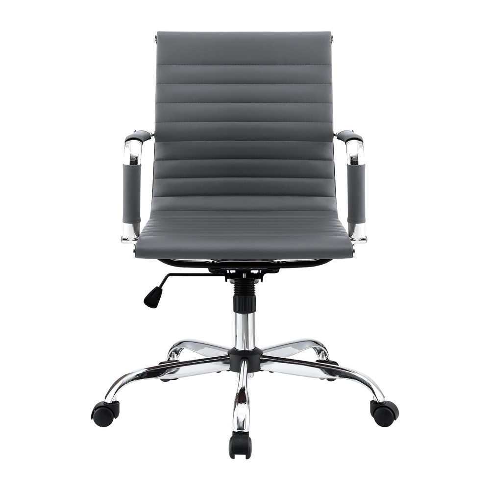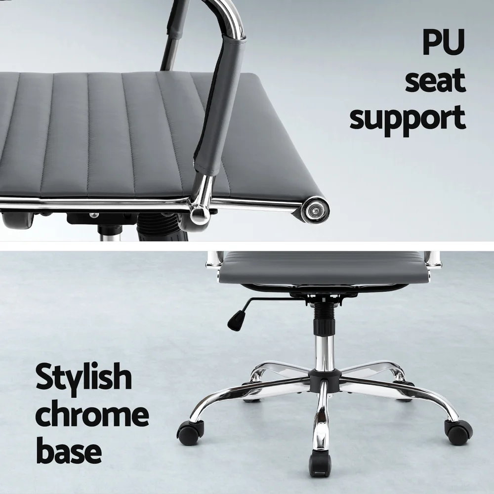 Artiss Office Chair Grey PU Leather Mid Back Conference Chair with Chrome Base, Adjustable Height and Tilt, 360° Swivel