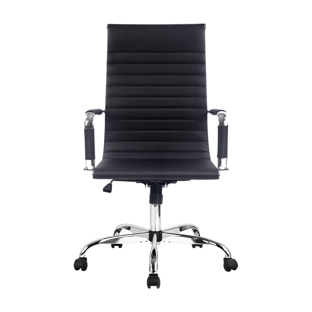 Artiss High Back Office Chair - Black PU Leather, 360° Swivel, Adjustable Height & Tilt, Chrome Base, Built-in Rack
