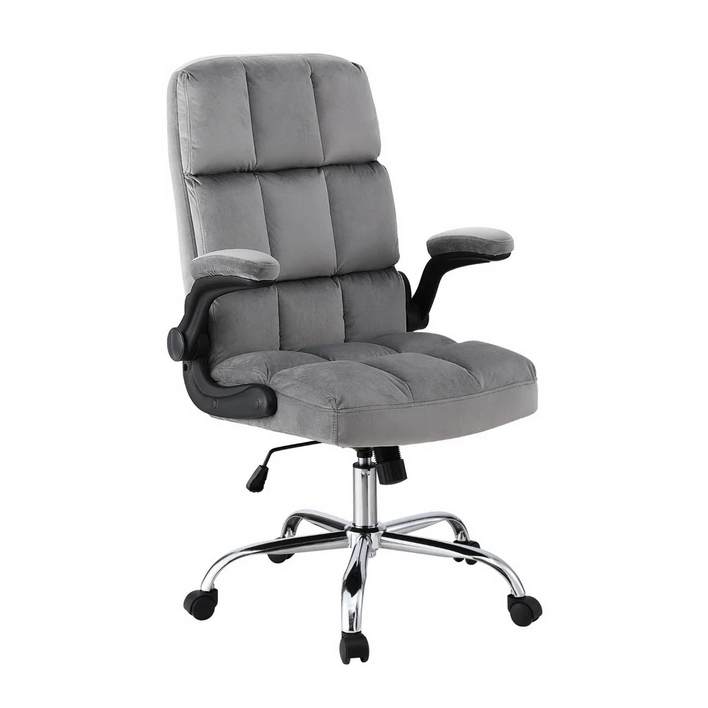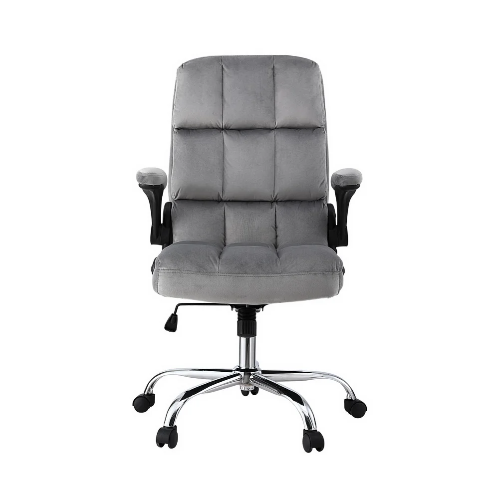 Upgrade your workspace with the Artiss Office Chair in Grey. Blending modern style with practical comfort, its contoured mid-back and plush velvet seat deliver ergonomic support for long hours. Enjoy flip-up padded armrests, tilt and height adjustments, and smooth mobility on a sturdy chrome base with five nylon castors. Perfect for home offices or gaming setups, this chair supports up to 150kg and comes with a 1-year warranty for peace of mind.