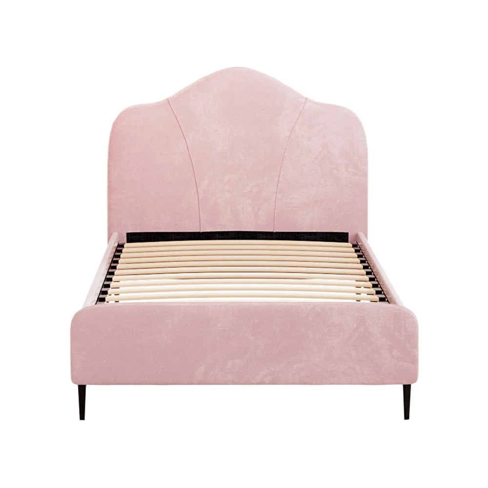 Artiss OLAN King Single Bed Frame, Velvet Upholstered, Pink, Solid Wood Slats, Plush Headboard, 180KG Capacity