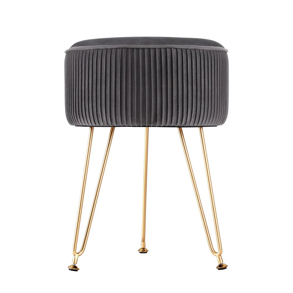 Artiss Ottoman Storage Foot Stool Round Velvet Charcoal Grey 40x40x45cm with Gold Base, 120kg Capacity