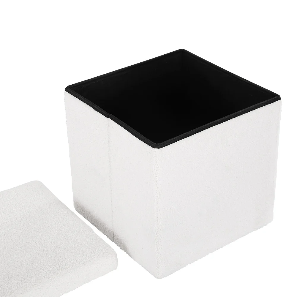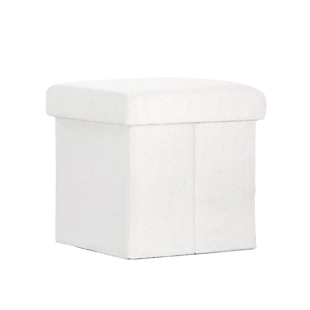 Artiss Janeska Ottoman Storage Footstool - White Boucle Fabric, Versatile Seating & Hidden Storage Solution