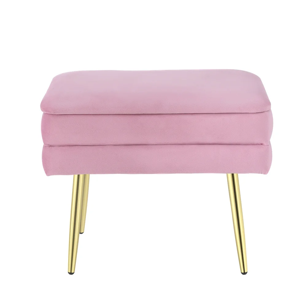 Artiss Ottoman Storage Foot Stool, Velvet, 50x34x42cm, Pink, Elegant Seating with Hidden Storage and Gold Metal Legs