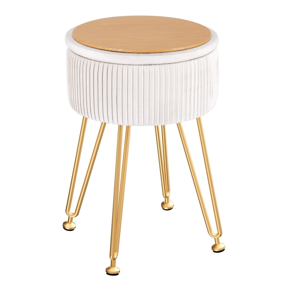Artiss Ottoman Foot Stool - Round Velvet Cream, Tufted Seat, Gold Accents, 40x40x45cm, Elegant & Sturdy Design