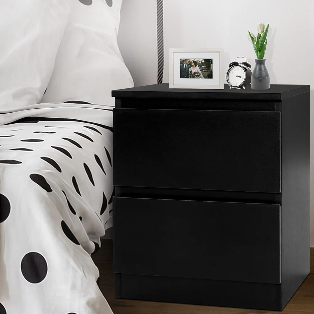 Artiss Pepe Bedside Table Black - 2 Drawers, 15mm Particle Board, Modern Handle-less Design, 40x39.5x50cm, Easy Assembly