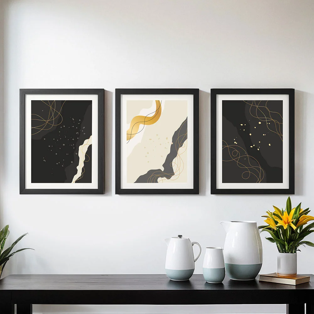 Artiss 3PC Photo Frame Set, MDF, 10"x14" Prints, Black, 38.7x30.7cm, Polystyrene Glass, Wall Hanging.