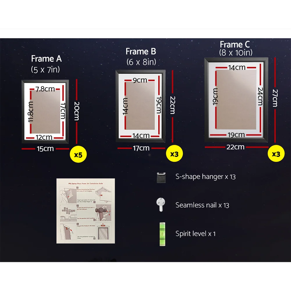 Artiss 11PCS Black Photo Frame Set | Durable Polymer Frames for 5x7, 6x8, 8x10 | Moisture-Resistant, Polysty