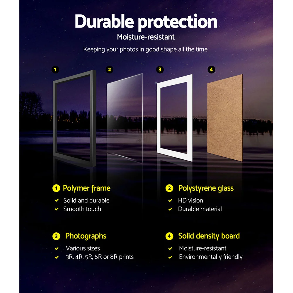 Capture the essence of your cherished memories with the Artiss Photo Frame Set. This comprehensive 30-piece collection is designed to showcase your favourite moments in a stunning display, transforming any wall into a gallery of personal stories. With frames suitable for a variety of sizes—from intimate 3R snapshots to striking 8R portraits—you can arrange them in portrait or landscape orientations to suit your style. Crafted from durable polymer with sleek black finishing and high transparency polystyrene glass, these frames protect your photos from moisture and damage. Complete with hanging accessories, this set is perfect for making your memories last a lifetime.