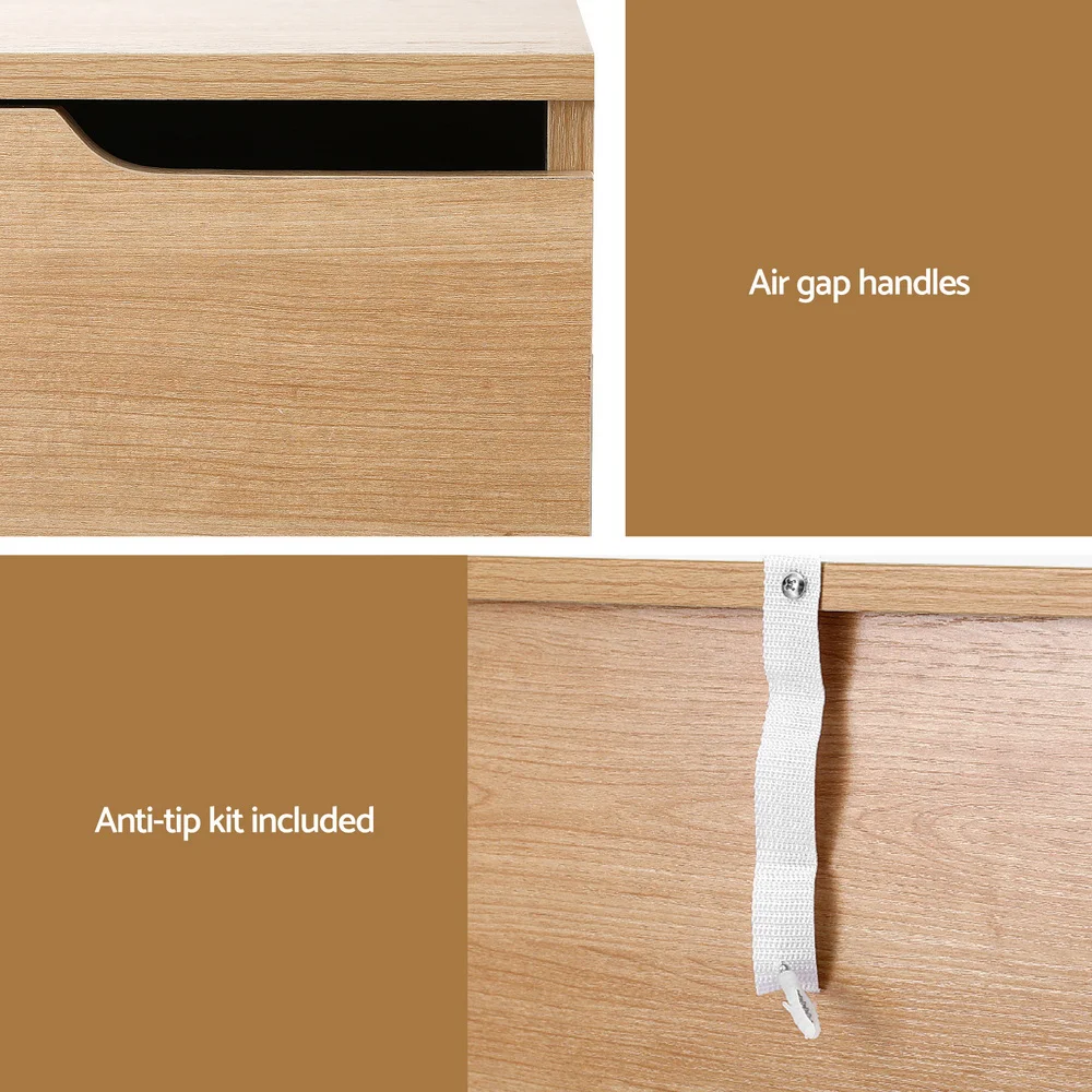 Elevate your living space with the Artiss Bedside Table, a versatile addition crafted from durable E1 particle board with a stylish melamine veneer finish. Its pine-coloured surface complements any decor, while two spacious drawers with air gap handles offer ample storage for your essentials. Ideal for bedrooms, living rooms, or studio apartments, its easy-clean surfaces resist stains, making it perfect for busy households. The table's sturdy construction includes an anti-tip kit for added safety, and it’s easy to assemble, ensuring a hassle-free setup.