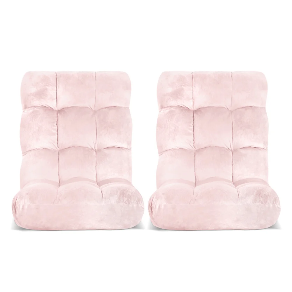 Artiss 2PCS Adjustable Floor Lounge Sofa Bed - Pink Flannel Fabric, Sturdy Steel Frame, 14 Positions, 96x42x13cm