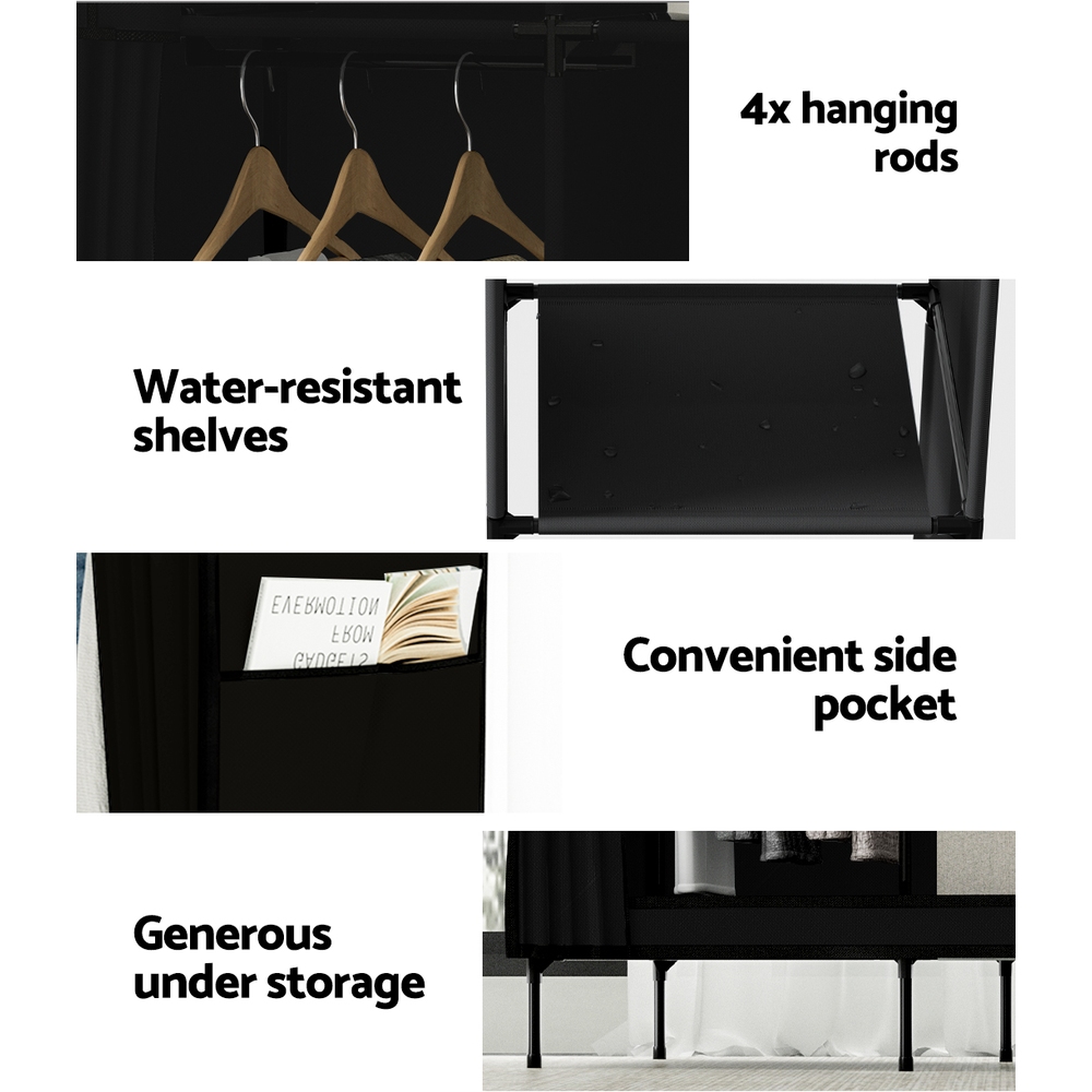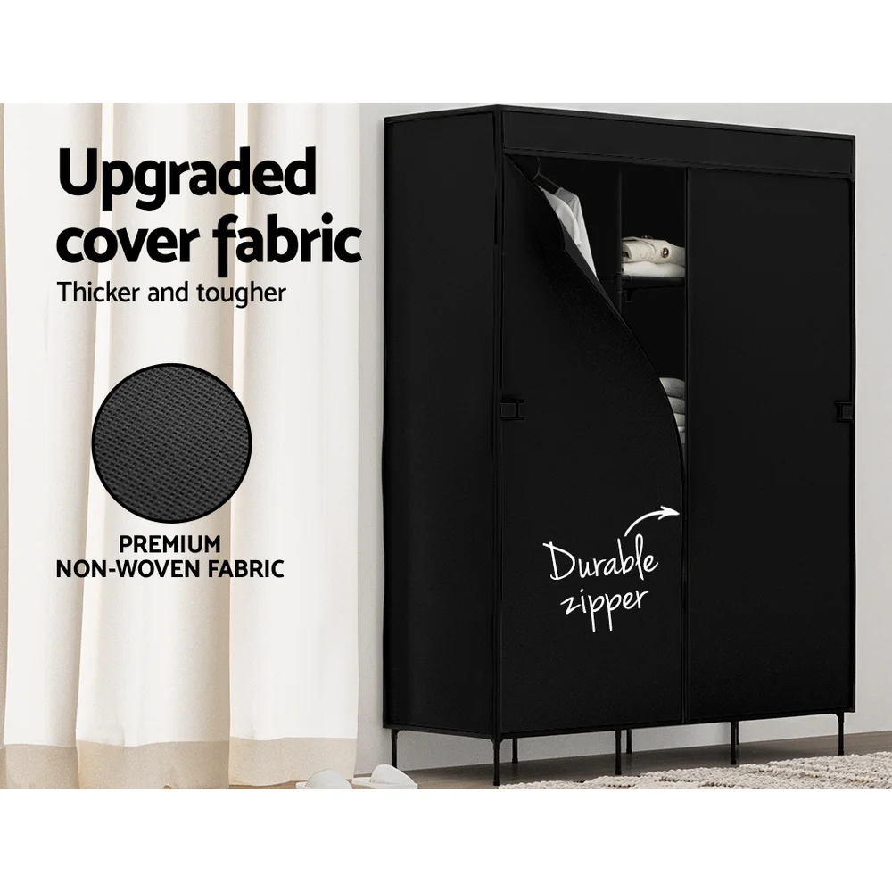 Artiss Large Portable Fabric Wardrobe with Shelves, Metal Frame, 124x42x173cm, Black - DIY Closet Storage Solution