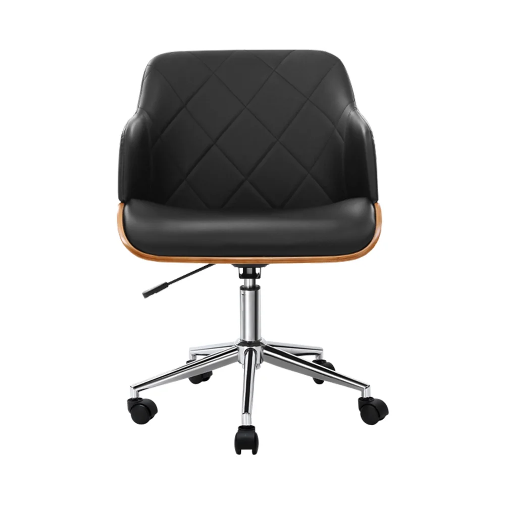 Artiss Portia Wooden Office Chair, PU Leather, Chrome Base, Black, Adjustable, 360° Rotation, 3-Year Warranty